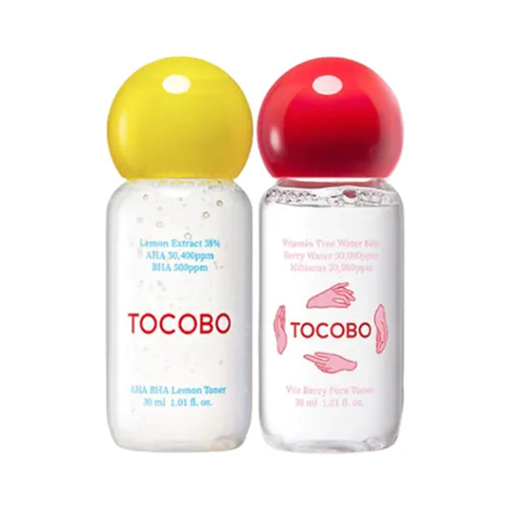 Este dúo combina el poder exfoliante del AHA BHA Lemon Toner (30 ml), ideal para eliminar células muertas y controlar el exceso de sebo, con la acción revitalizante del Vita Berry Pore Toner (30 ml), que ilumina y afina los poros gracias a su mezcla antioxidante de bayas y vitaminas.